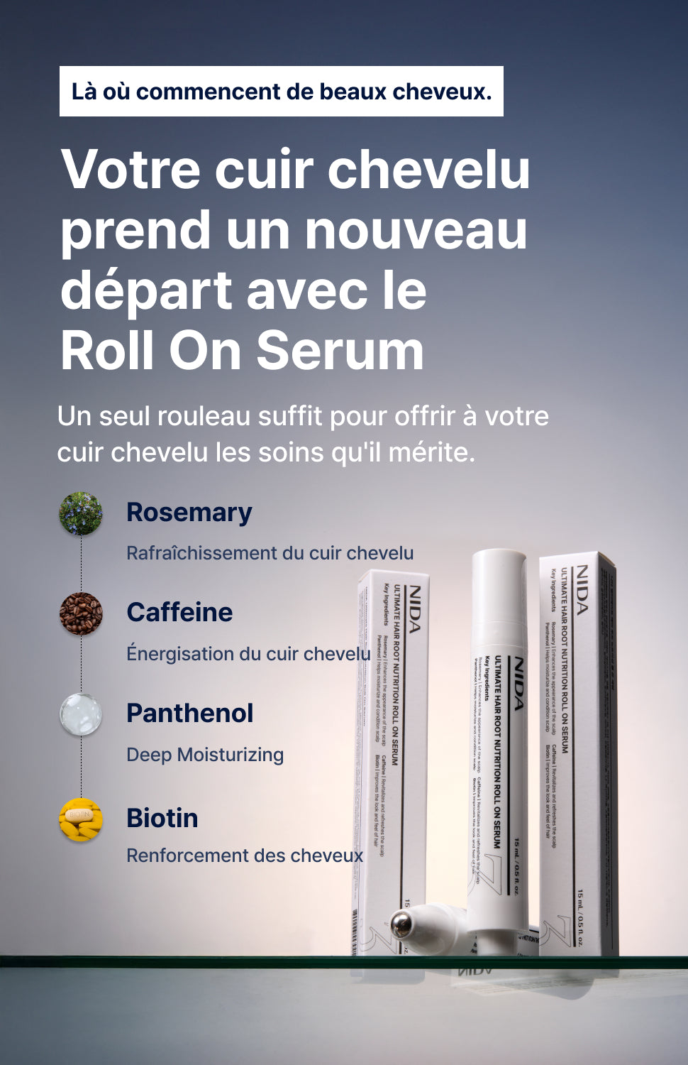 Le format roll-on permet une application directe des nutriments